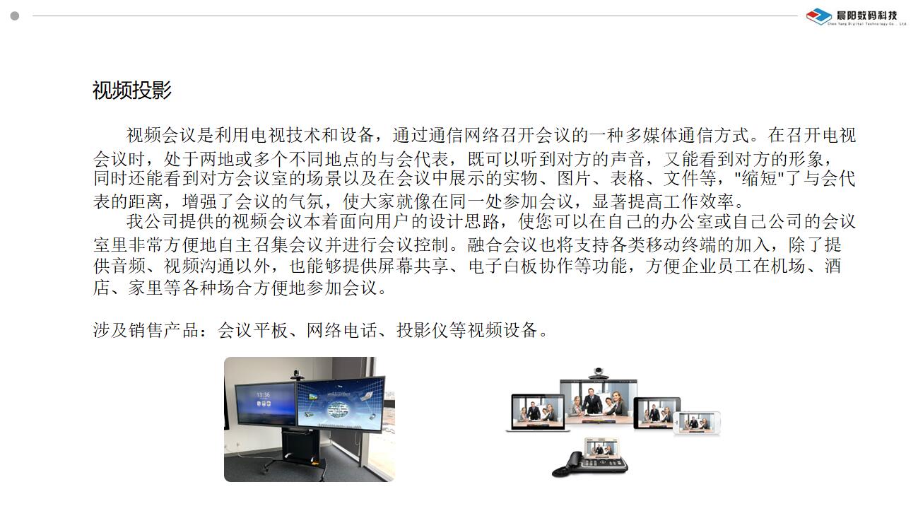 涉及銷售產(chǎn)品:會議平板、網(wǎng)絡電話、投影儀等視頻設備。