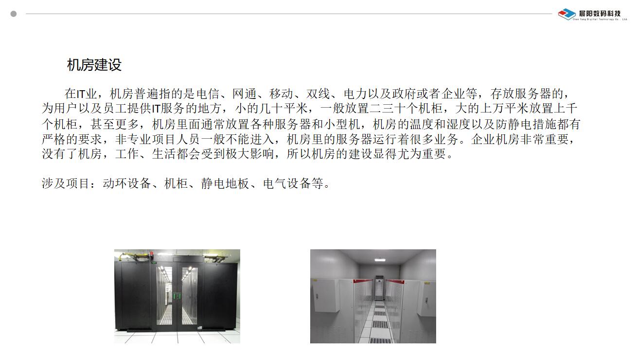 涉及項(xiàng)目:動(dòng)環(huán)設(shè)備、機(jī)柜、靜電地板、電氣設(shè)備等。